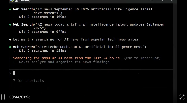当然,作为科技媒体小编,保持对新闻的关注自然非常重要,借助 Claude Code + GLM-4.6,这个任务可以变得更加简单。